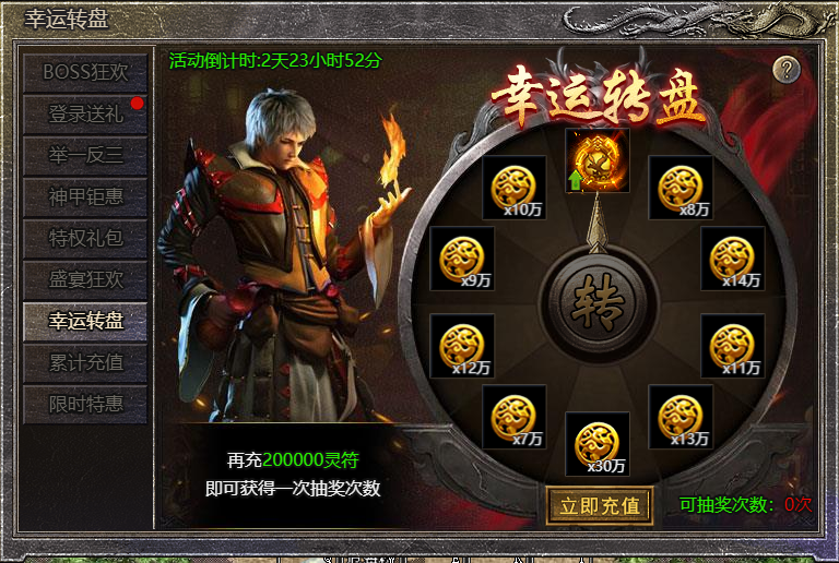 1.活动期间,每充值200000灵符可获得一次抽奖机会,上限10次;