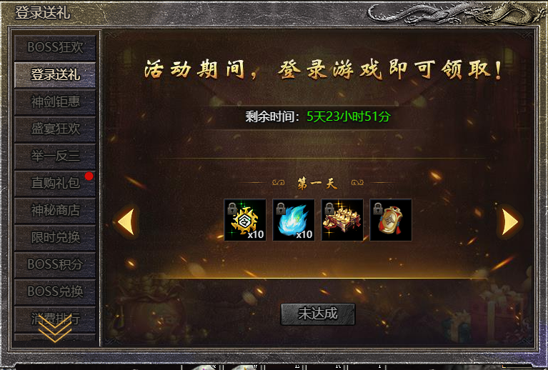 1.活动期间,玩家每天登录游戏,可以在活动界面中领取一份奖励;