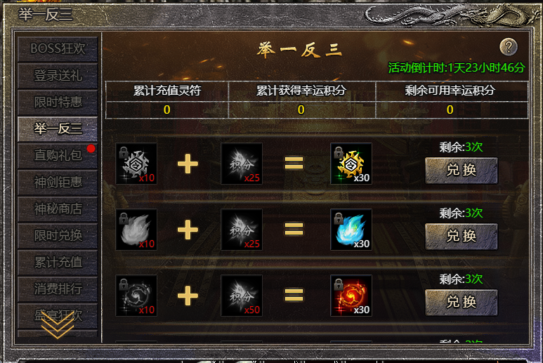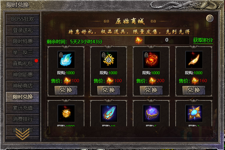 2.在神秘商店每消费1灵符可获得1积分,积分可在限时兑换中兑换物品;