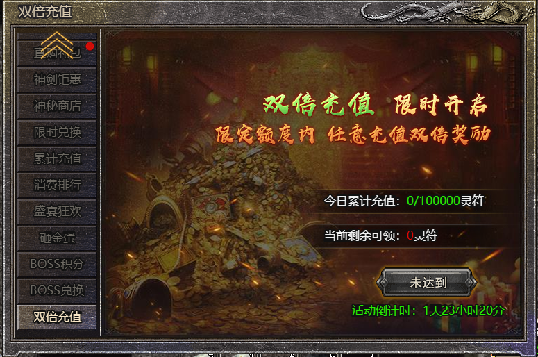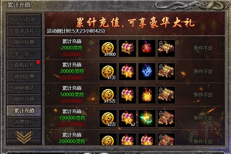 1.活动期间,每充值一定的灵符可领取一份奖励;