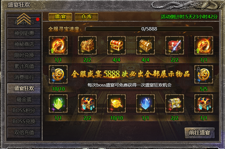 2.达到全服盛宴进度,将必会获得一份展示物品哦!