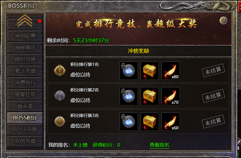 2.玩家boss积分累计达到指定数量即可参与冲榜