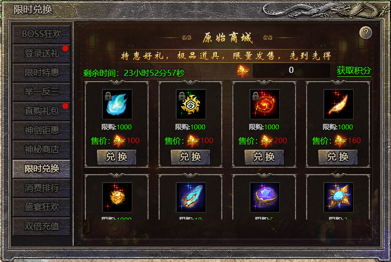 2.在神秘商店每消费1灵符可获得1积分,积分可在限时兑换中兑换物品;