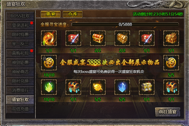 2.达到全服盛宴进度,将必会获得一份展示物品哦!