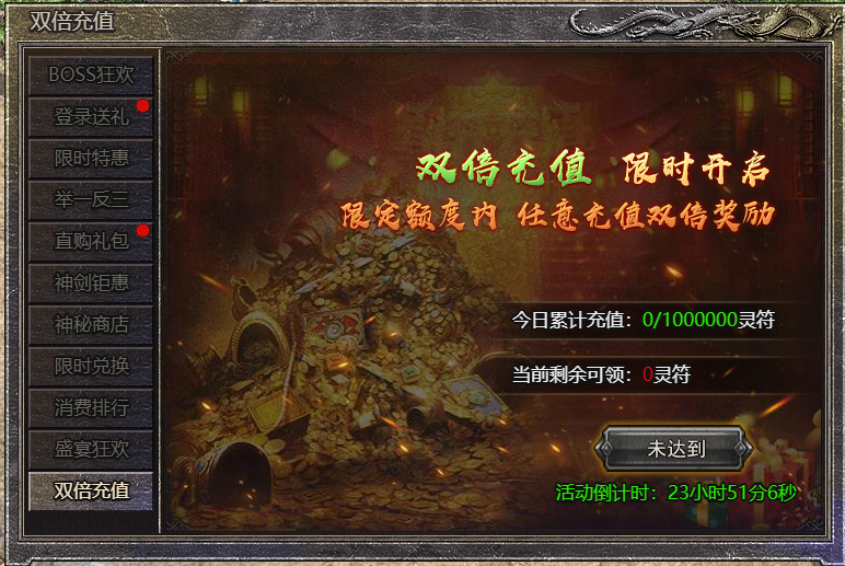1.活动期间,限定额度,任意充值可得双倍灵符奖励;