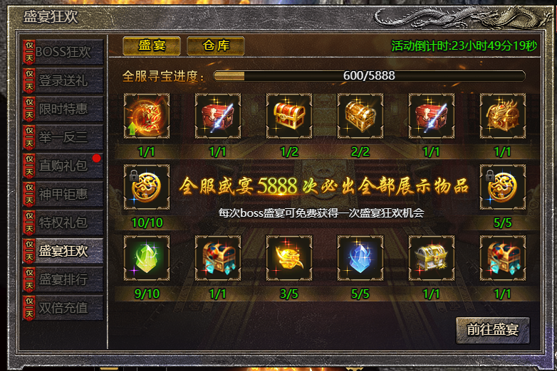 2.达到全服盛宴进度,将必会获得一份展示物品哦!