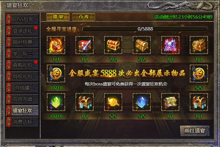 3.达到全服盛宴进度,将必会获得一份展示物品哦!