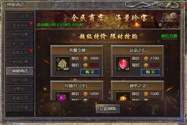 2.在神秘商店每消费1灵符可获得1积分,积分可在限时兑换中兑换物品;