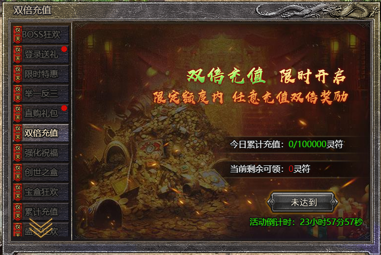 1.活动期间,每充值一定的灵符可领取一份奖励;