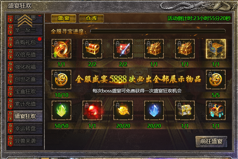 2.达到全服盛宴进度,将必会获得一份展示物品哦!