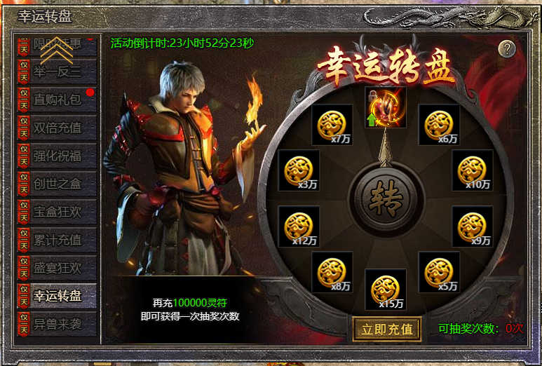 1.活动期间,每充值100000灵符可获得一次抽奖机会,上限10次;