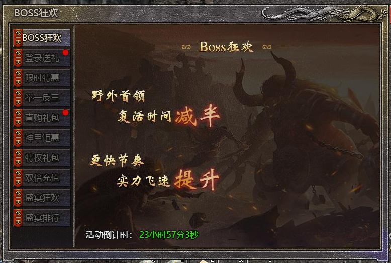 1.活动期间在参与盛宴boss,每次盛宴都有可能获得展示的物品奖励