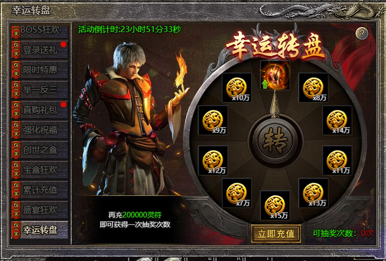 1.活动期间,每充值200000灵符可获得一次抽奖机会,上限10次;