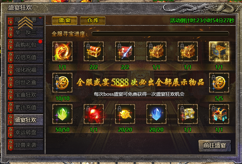 2.达到全服盛宴进度,将必会获得一份展示物品哦!