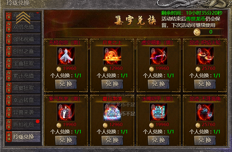 2.使用传世龙币可以在玲珑兑换里换取想要的物品哦