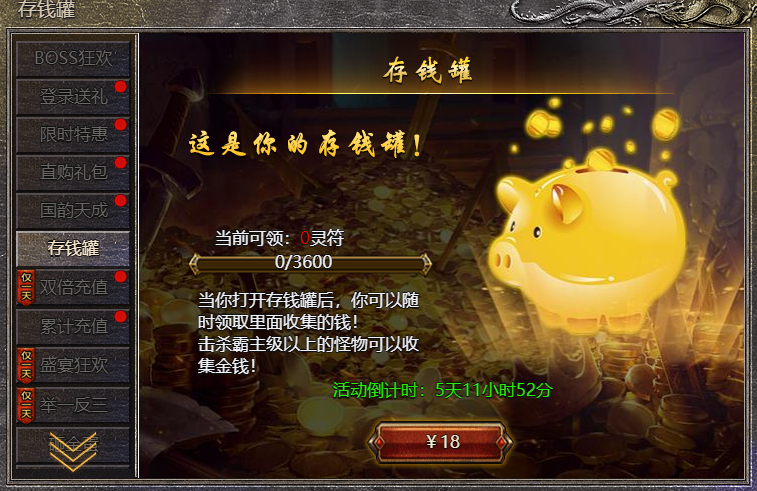 热血封神10月1日-10月6日国庆活动 存钱罐活动开启