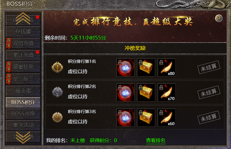 2.玩家boss积分累计达到指定数量即可参与冲榜