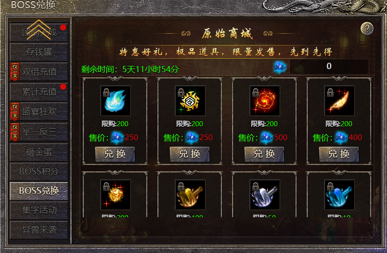 2.BOSS死后必定掉落随机神魔器,大量元宝和稀有材料