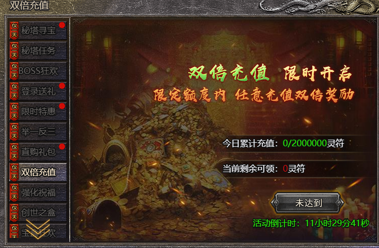1.活动期间,每充值一定的灵符可领取一份奖励;