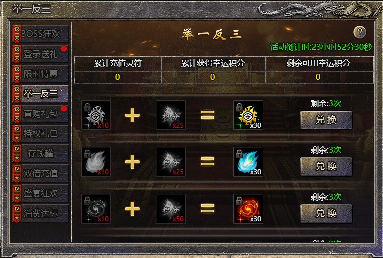 2.消耗积分可将物品3倍兑换