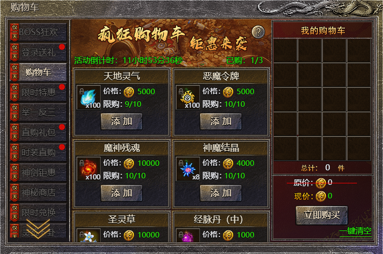 1.活动期间,大量物品限时出售;