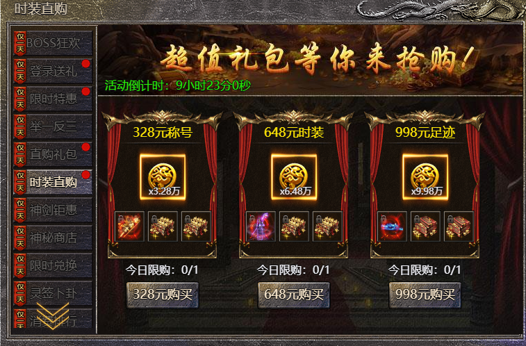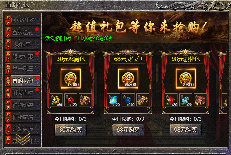 3.活动礼包每天只可购买1次,期间每天重置;
