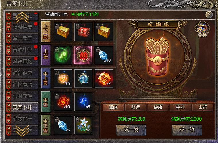 1.活动期间,玩家在选择签筒后,可消耗灵符进行求签;