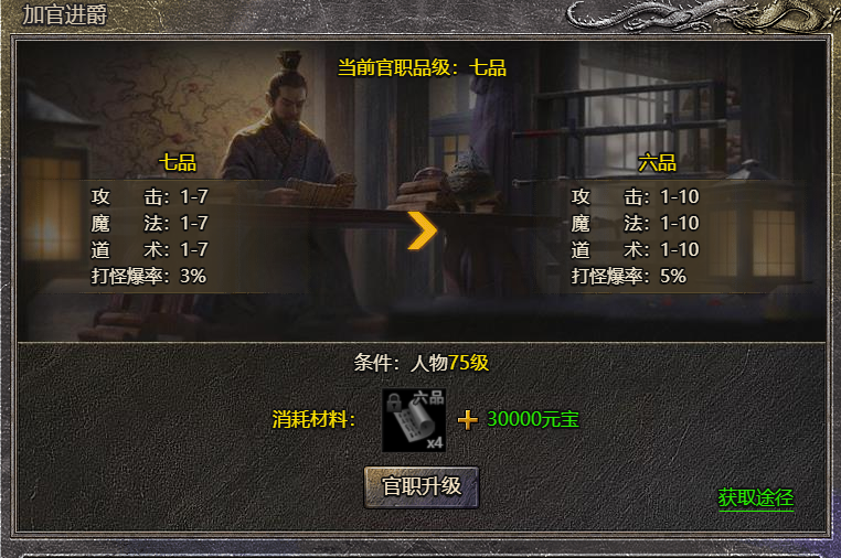 并获得官职称号,官职称号随官职等级的提升而变化。