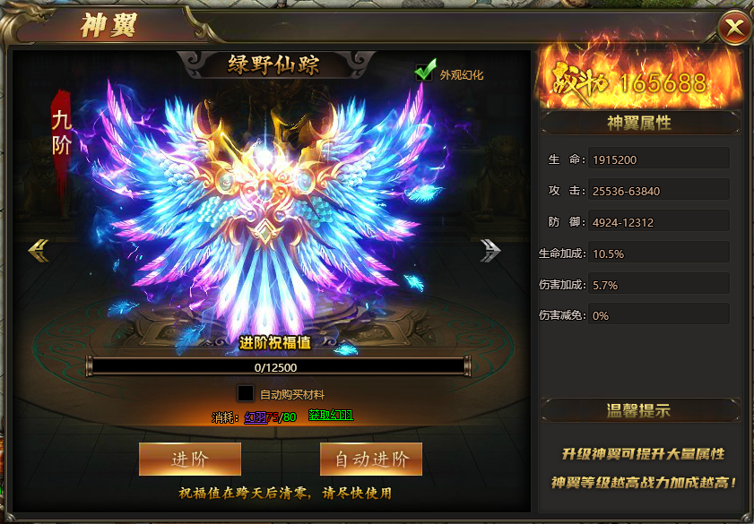 神翼系统可以让玩家获得炫酷翅膀外形,并且获得大量属性
