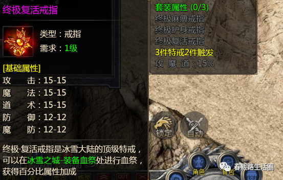 终极·复活戒指是冰雪大陆的顶级特戒可以在冰雪之城-装备血祭处进行血祭获得百分比属性加成。