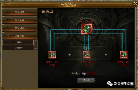 消耗3个同种四象令牌与一定银两可合成更高阶的四象令