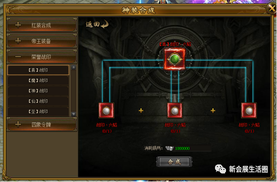 消耗3个同种战印和一定银两可合成同种的【真】荣誉战印