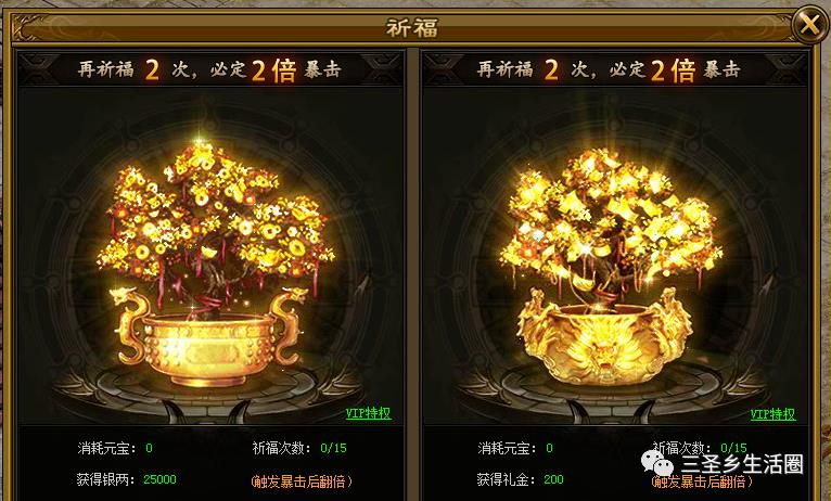 嗜魂online多种主流玩法,全服争霸,享受战斗竞技新体验。谁能成为王者,立足全服之巅。单职业合击嗜魂online玩家可以通过祈福系统获得大量银两和绑元!玩家每日可免费银两祈福1次,免费礼金祈福1次。提升VIP可提高每日免费祈福的次数。每祈福3次,下1次祈福必定暴击,获得双倍的奖励!