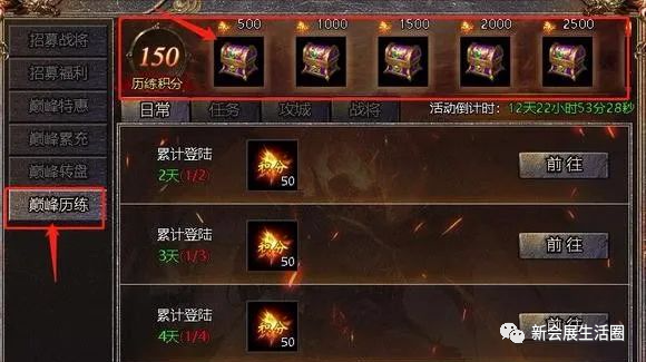 巅峰历练里可以完成很多任务。积分累计后可领取相对应的奖励。