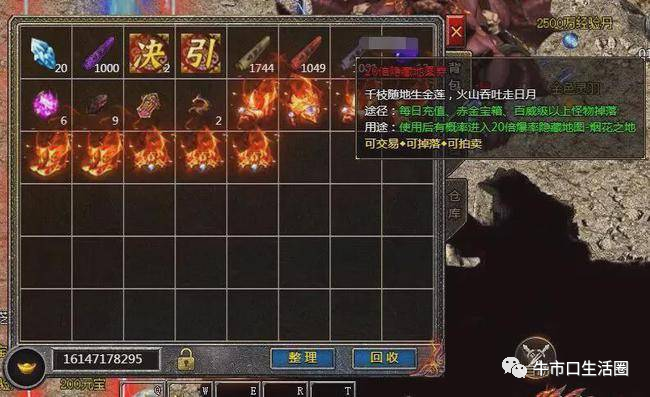 传奇霸主20倍隐藏地图烟花之地,这张地图为一张弯曲的9字形的地图,使用【20倍隐藏地图券】后,地图入口持续300秒后,会自动消失的。大家每次进入烟花之地后,有2小时的逗留时间,超出2小时自动退出该地图,可以重新使用【20倍隐藏地图券】,再次进入该地图,每天不限使用次数。这张地图内主要分布着十方、百威、千煞、万世、轩辕至尊、九黎至尊、八卦至尊、神农至尊这些高级的BOSS,而且这些BOSS分布密集,非常容易找到的,是我们日常的打宝圣地。