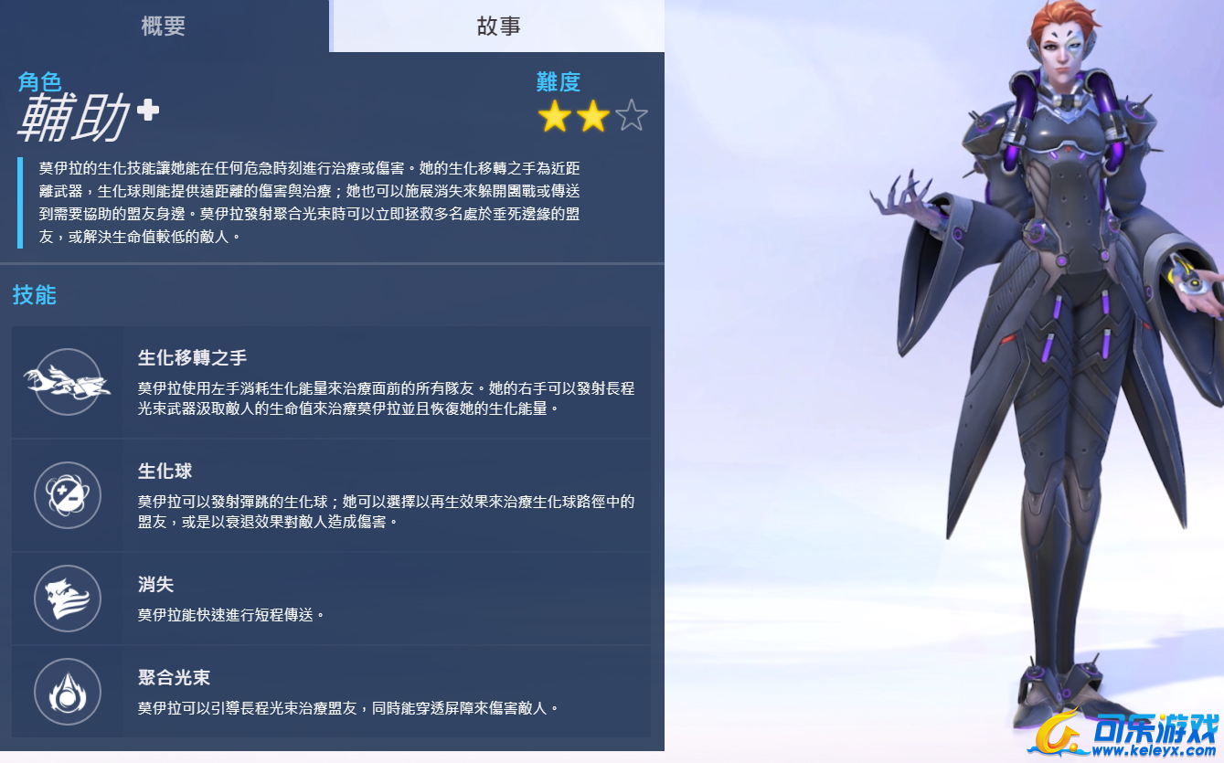 莫伊拉可以运用生化能量提供治疗或输出伤害——但一切都是为了她自己的利益。