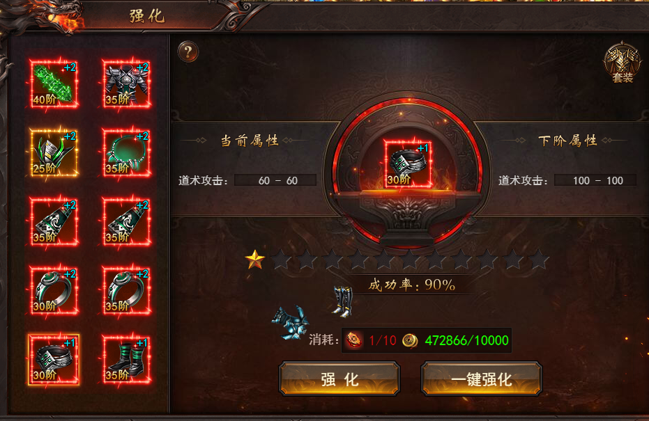装备强化是通过消耗强化石和元宝来提升装备等级的过程。强化等级的提升会增强装备的属性,从而增强角色的战斗能力。值得注意的是,装备的强化等级不会因为装备的更换或掉落而消失,这为玩家提供了极大的便利。