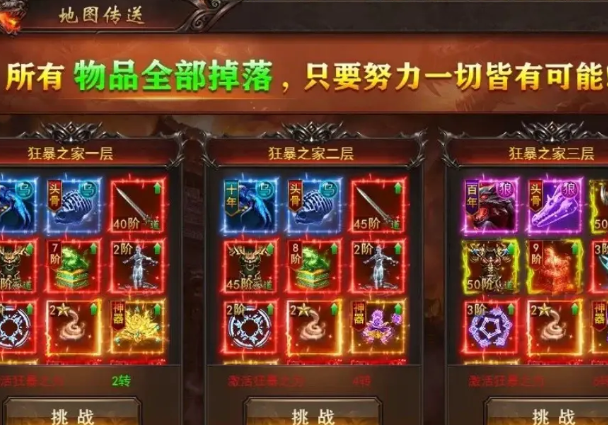 珍稀道具:狂暴之家有概率掉落吸血金刚、万年魂环魂骨以及2星吸血装备等,这些道具对提升角色实力至关重要。