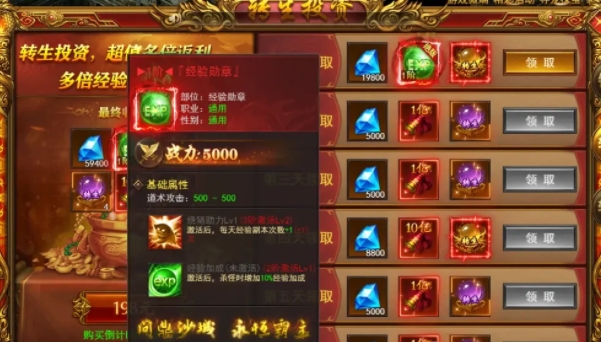 转生投资:玩家可通过参与转生投资活动获得经验勋章。在活动期间投入资源,完成后即可获得包括经验勋章在内的丰厚奖励。