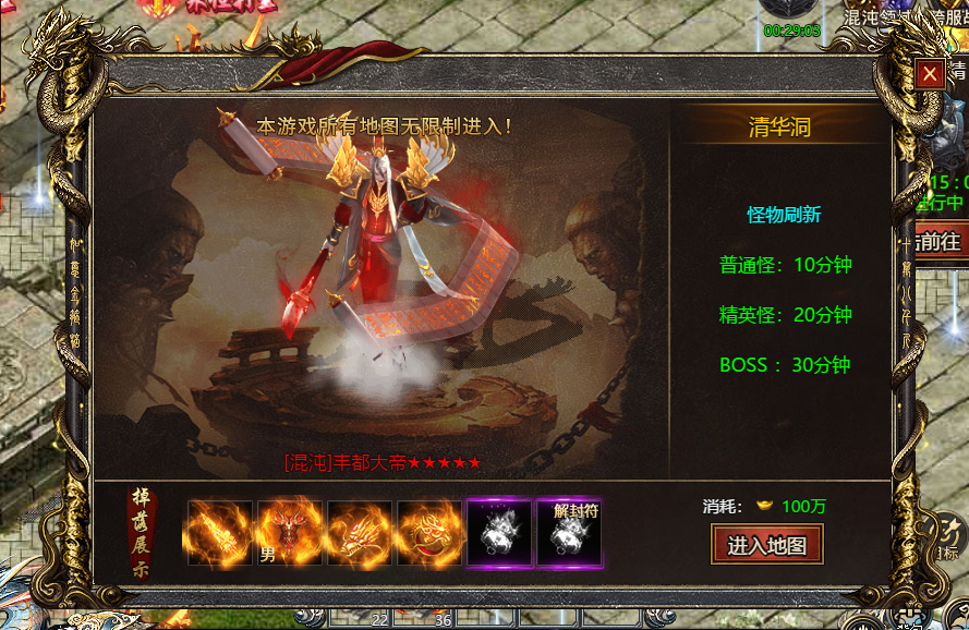 永恒地图:火焰山、芭蕉洞、摩云洞、碧波潭、木仙庵、雷音寺、稀柿、麒麟山、盘丝洞、狮驼岭、清华洞、无底洞,适合顶级玩家。