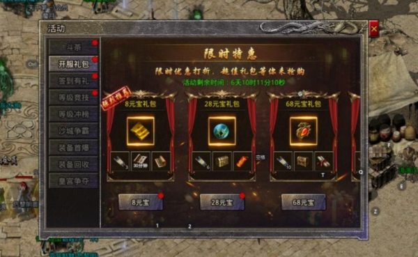 开服礼包:通过购买开服礼包,可以快速提升战力。