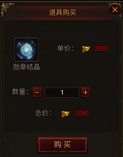 2. 准备足够的【勋章结晶】和通宝。勋章结晶可以通过至尊祈福、每日活跃任务、元宝商城购买等方式获得;通宝则可以通过充值赠送、每日活跃、击败福利BOSS、元宝商城等途径获取。