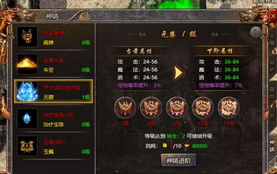 优先升级元婴神铸:由于元婴神铸能增加爆率,这对于早期游戏进程非常有利。