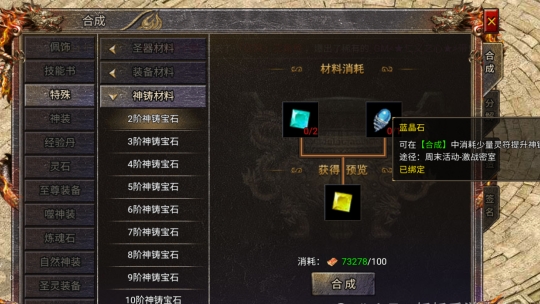 30天后,神铸材料可以直接合成,这比直接从灵符商城购买要节省不少灵符。合成神铸材料需要蓝晶石,这种材料可以通过每日首充和周末活动获得。通过蓝晶石合成升级神铸材料,你只需在灵符商城购买1级神铸宝石即可。