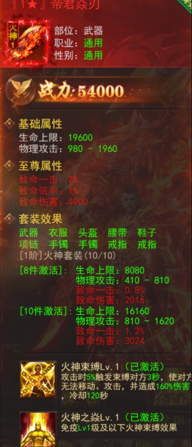 火神套装专注于强力控制,能够让敌人在战斗中无法移动和攻击,同时附带致命一击的属性。