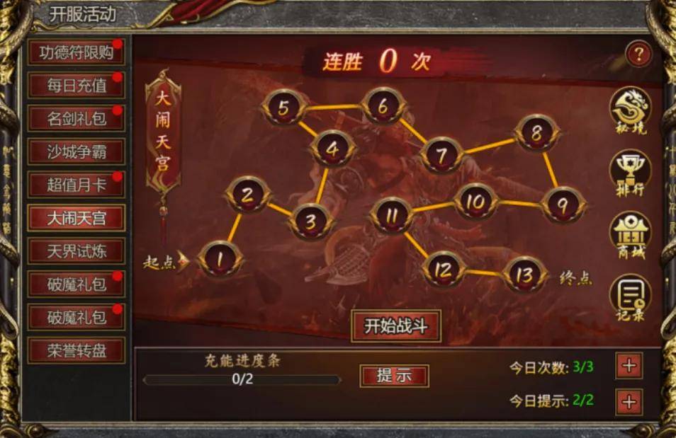 战斗次数限制:每天最多可以进行13次战斗,其中3次免费,5次通过道具消耗,5次通过灵符消耗。