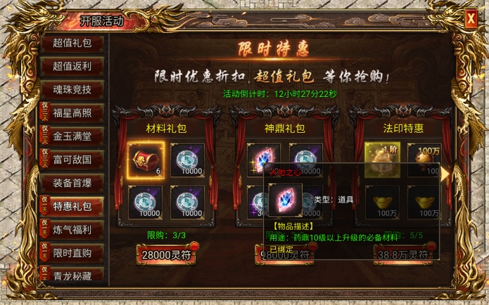 开服豪礼:在开服豪礼中,每日累计充值300和1000档位礼包里都包含大地之心材料。