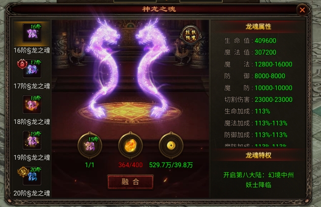 龙魂系统是提升战力的重要环节,玩家应积极参与提升龙魂: