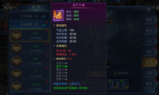 挑战策略:在挑战生肖BOSS时,要根据BOSS的特点制定相应的战斗策略。例如,针对防御较高的BOSS,可以优先提升自身的攻击力和穿透能力;面对攻击频繁的BOSS,则要增强自身的防御和闪避能力。