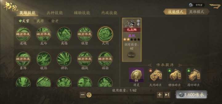 升级材料:升级技能需要消耗技能碎片和银币。技能碎片可以通过多种途径获取,如商店购买、活动获取和分解武将碎片。
